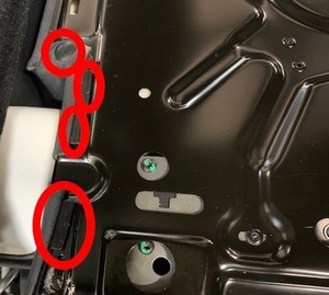 Route the LH 3rd row seat connectors (x2) around the lower section of the upholstery,
