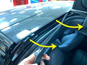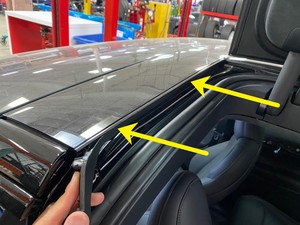 NoteRelease LH B-pillar seal from the applique perimeter and front roof applique assembly.