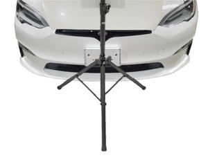 CAUTIONDo not use existing marks from previous verifications. Remove any existing tape. Measure and reapply new tape to ensure the tape is in the correct location.NoteThe checker pattern on the target is used for vehicles with 1st generation Autopilot. Ignore the checker pattern when affixing the tape.NoteIf the vehicle is equipped with aftermarket suspension components that alter the vehicle ride height, the red tape might have to be adjusted to ensure accurate pitch verification.
