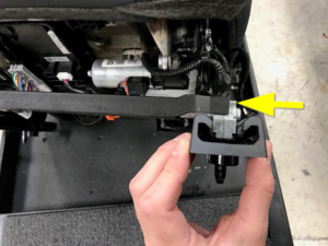 - With assistance, place the driver seat on a protected surface so that the underside of the seat can be accessed.