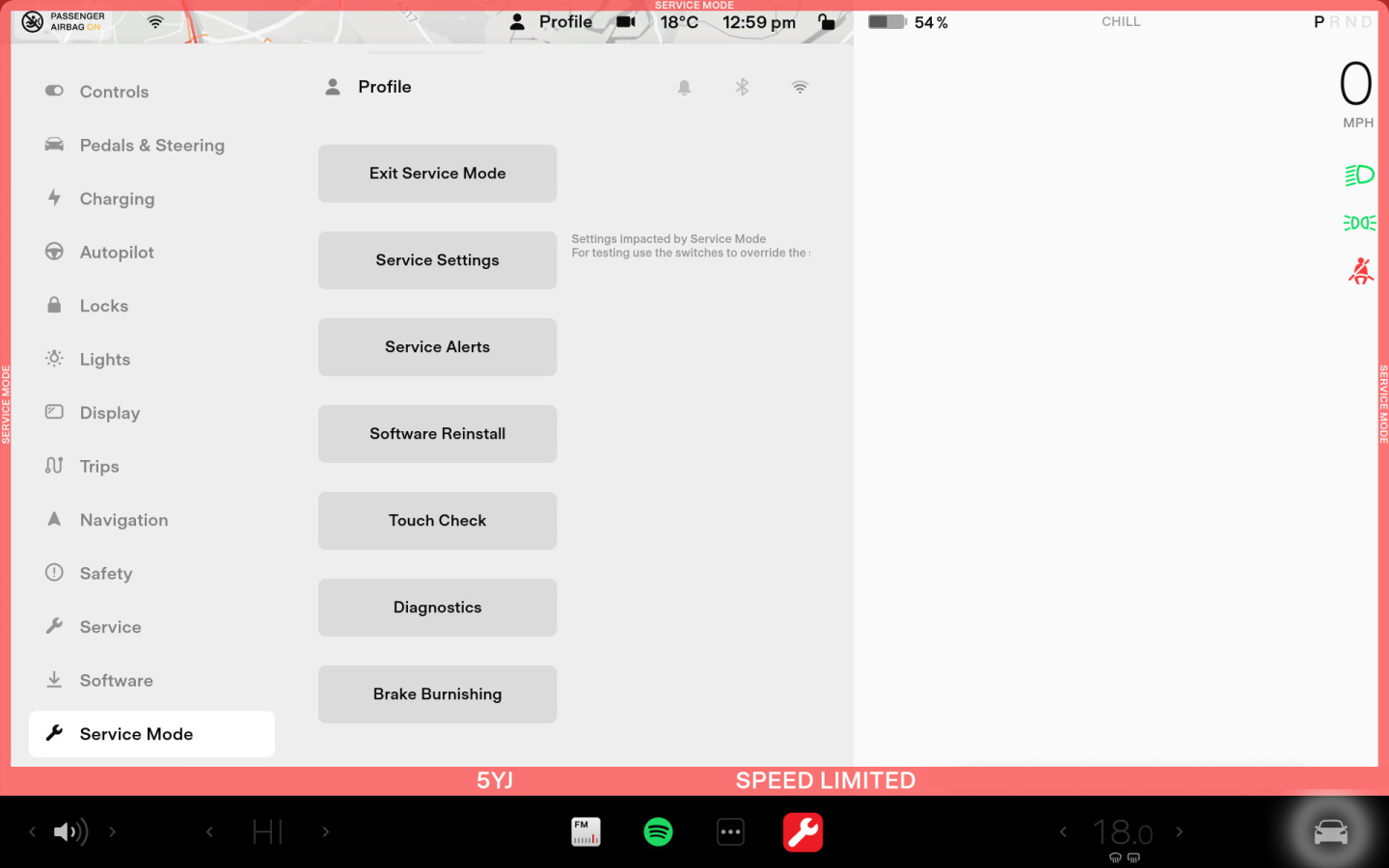 - On the vehicle touchscreen, touch NoteThe red "SERVICE MODE" overlay is removed. at the top of the Service Mode menu.