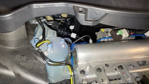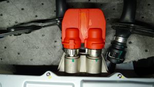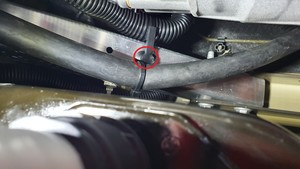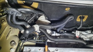 Remove the coolant hose clamps from the car computer supply hoses, and then remove the hoses through the firewall and into the frunk compartment.