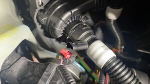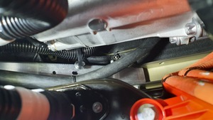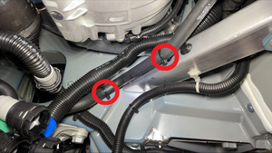 Release the clips (x2) that attach the HVAC drain hose to the vehicle.