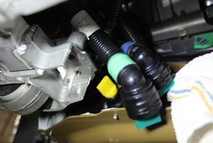 NoteRemove the coolant plugs while leaving coolant clamps engaged. Ensure spring locks engage and perform a push-pull-push test on each hose coupling to make sure the hoses are fully seated.NotePlace coolant absorbent mats or rags around the car computer.TIpUse of the following tool(s) is recommended: