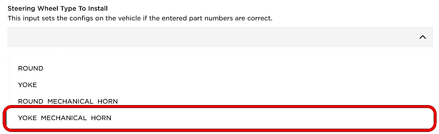 - For a steering yoke with mechanical horn, select YOKE MECHANICAL HORN.