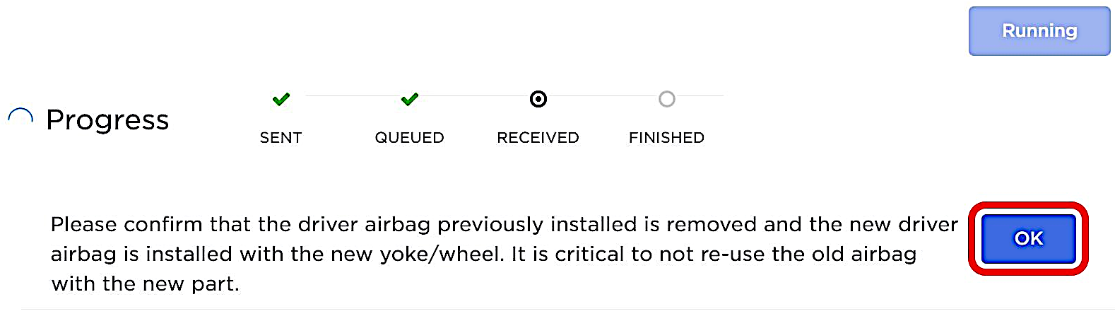 - Verify operation of the horn, and inform the customer that the steering yoke no longer has a touch horn icon and that the vehicle horn is now mechanically activated by pressing the airbag.