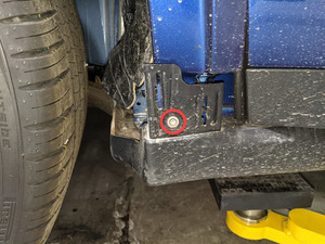 Remove clips (x3) that attach the rear end of the LH rocker panel molding to the LH rear wheel arch liner, and move the liner aside for access.