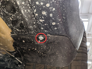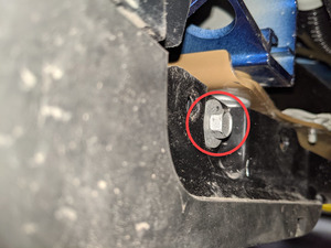 Remove the bolt that attaches the bottom of the LH rear wheel fairing to the body.