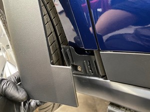 Fasten the clips (x3) that attach the rear portion of the LH front fender garnish to the LH rocker panel molding.