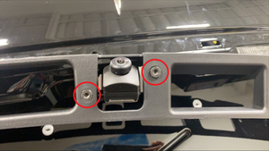 Position the rear facing camera onto the liftgate applique bracket, secure the camera