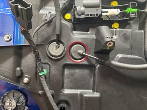 handle release cable grommet into the LH front door closeout panel.
