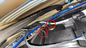Install the latch cable clips (x2) on the backside of the LH front door closeout