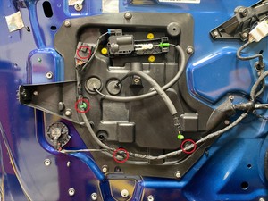 LH front door harness to the LH front door closeout panel.