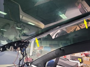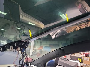 - Check the gap and flush of the windshield assembly to the body before fully seating the windshield assembly.