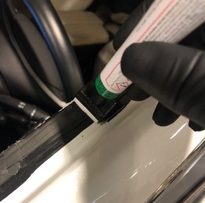 Apply urethane primer to the windshield and vehicle body along the urethane path and in areas that were damaged during removal of the windshield assembly.