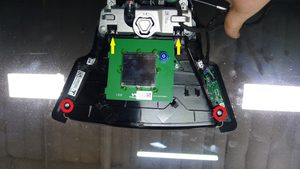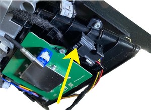 NoteMake sure the blue tape is removed from the foam pad before installation.NoteMake sure the windshield is completely dry before attempting to install. The foam pad will not stick if the windshield is wet.NoteAlign the hole on the PCB with the plastic alignment pin.