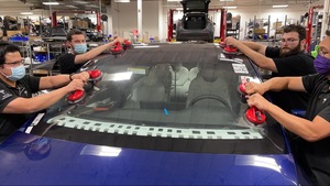 - With assistance, install the new windshield assembly onto the vehicle, and apply pressure to all four corners of the glass.