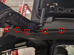Remove the bolts (x2), screw, and nut that attach the LH upper A-pillar trim to the