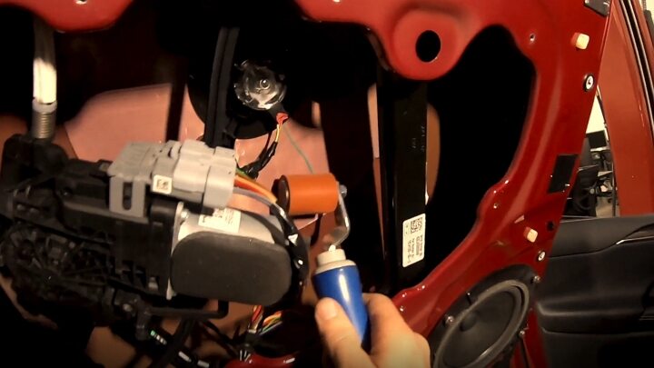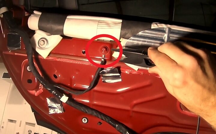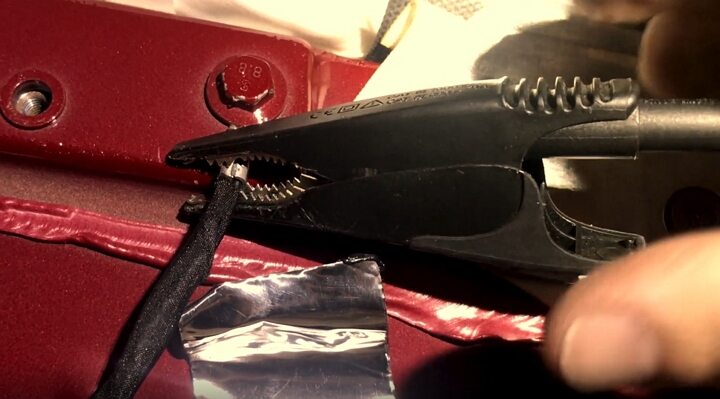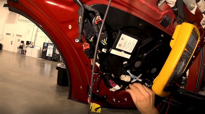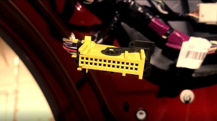 - Clamp the negative lead to the LH upper door harness ground terminal.