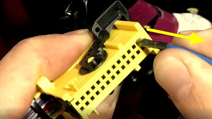 - Insert the positive test pin into cavity 13 of the ultrasonic ECU logic connector.