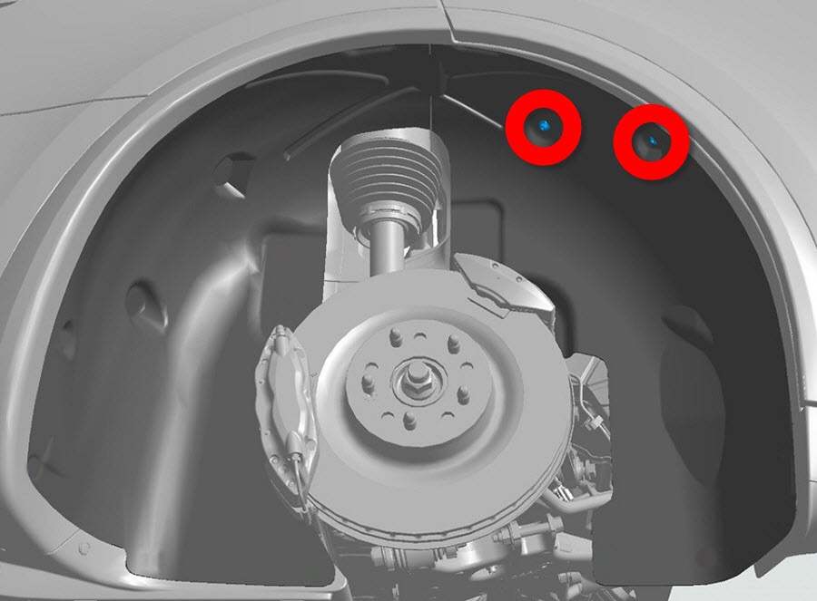 Remove the forward nuts (x2) that secure the rear wheel arch liner to the studs