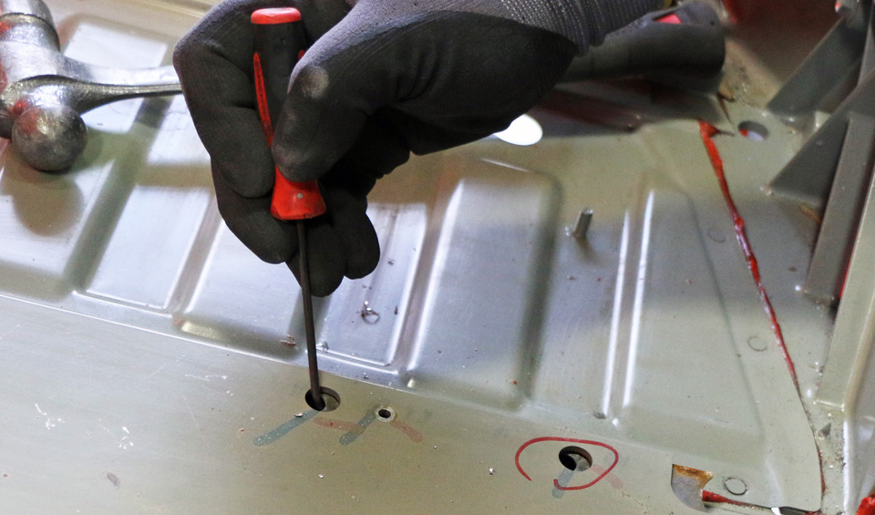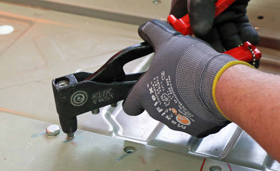 Insert pop rivets.
