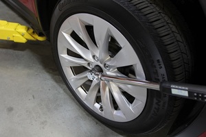 - Loosen the lug nuts on the LH rear wheel.
