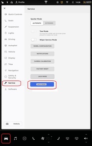 NoteSet air suspension to "Jack Mode" Via Controls > Service > ''Jack Mode''