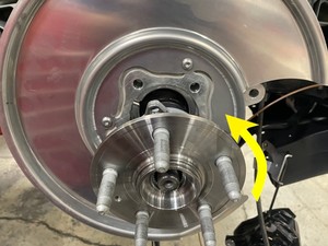 - Remove the LH rear brake rotor from the hub and bearing assembly.