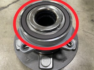 mating surfaces of the LH rear driven hub and wheel speed sensor.