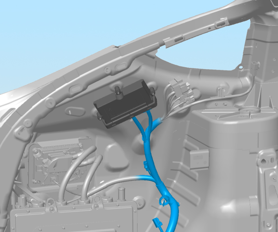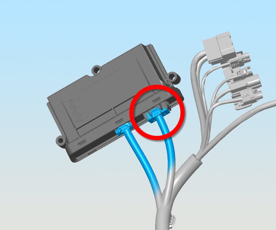 Disconnect the front harness from the EPB module inside the vehicle. Connect this