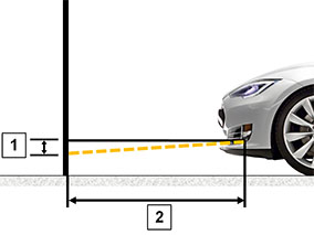 Model S and Model X fog lights source luminous flux is less than 2000 lumens. For this reason the aim must be -1% (-0.57 degrees) or less. Use the Headlight Tester, Beissbarth, Model 815 (1133367-00-A) or a wall or aim board following these guidelines: