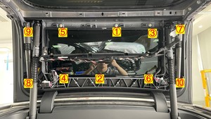 With assistance, remove the nuts (x10) that secure the LH falcon door upper class, and then remove the LH falcon door upper glass.