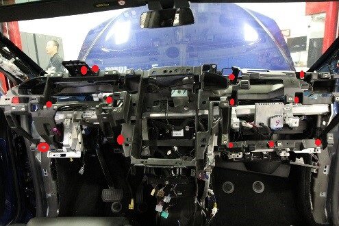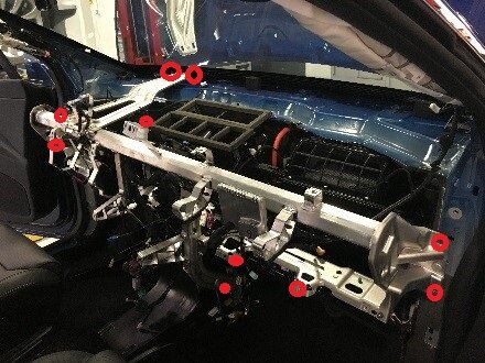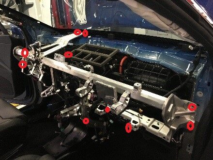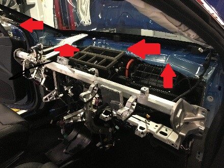 Note(x2) clips. If vehicle is equipped with DAS 2.0 and the module was removed in order to access the front passenger airbag bolts, then reinstall the DAS 2.0 module.