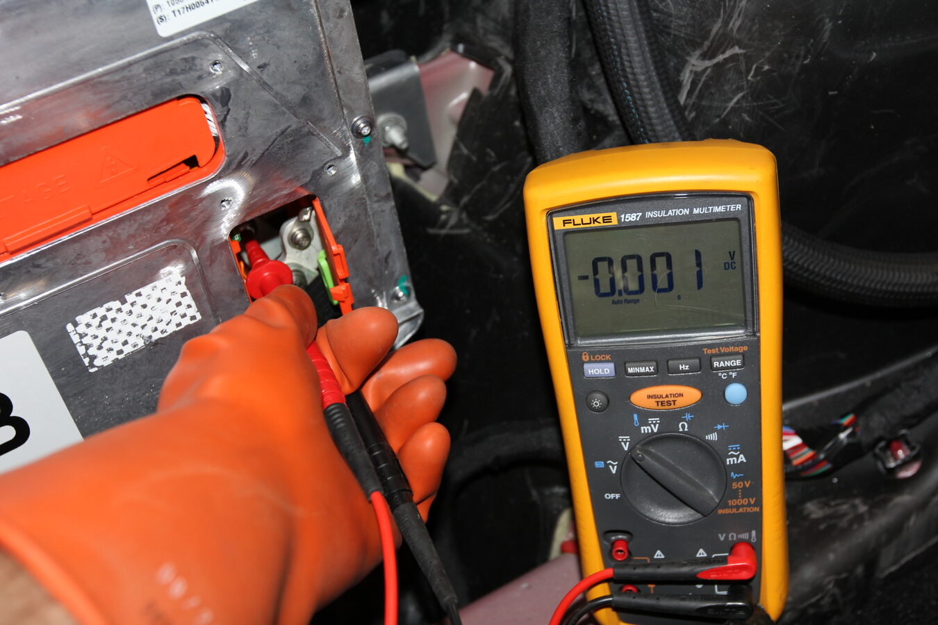 Proper Personal Protective Equipment (PPE) and insulating HV gloves with a
