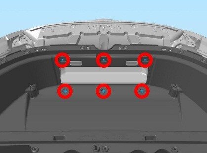 Note(x2) screws, (x9) clips, T20, 2.3 Nm