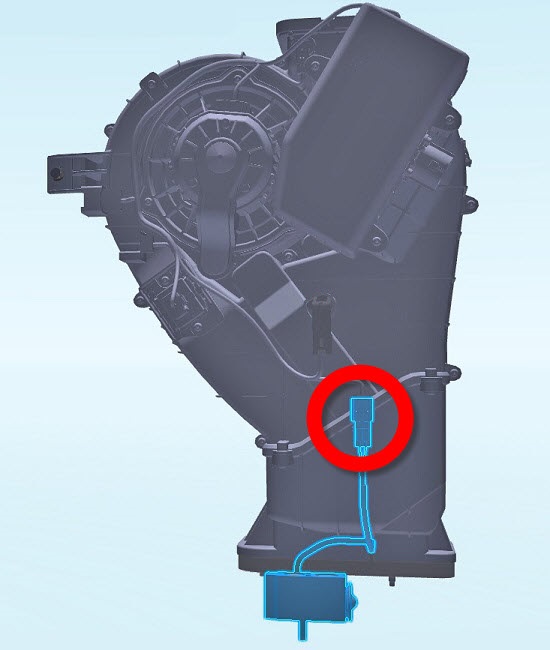 Release the clips (x2) that attach the rear TXV electrical harness to the side of the rear HVAC assembly.