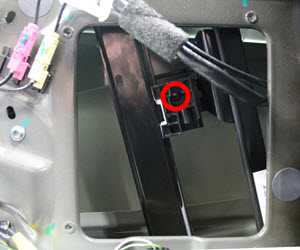 Using the window switch tool, raise the regulator for access to the front clip.