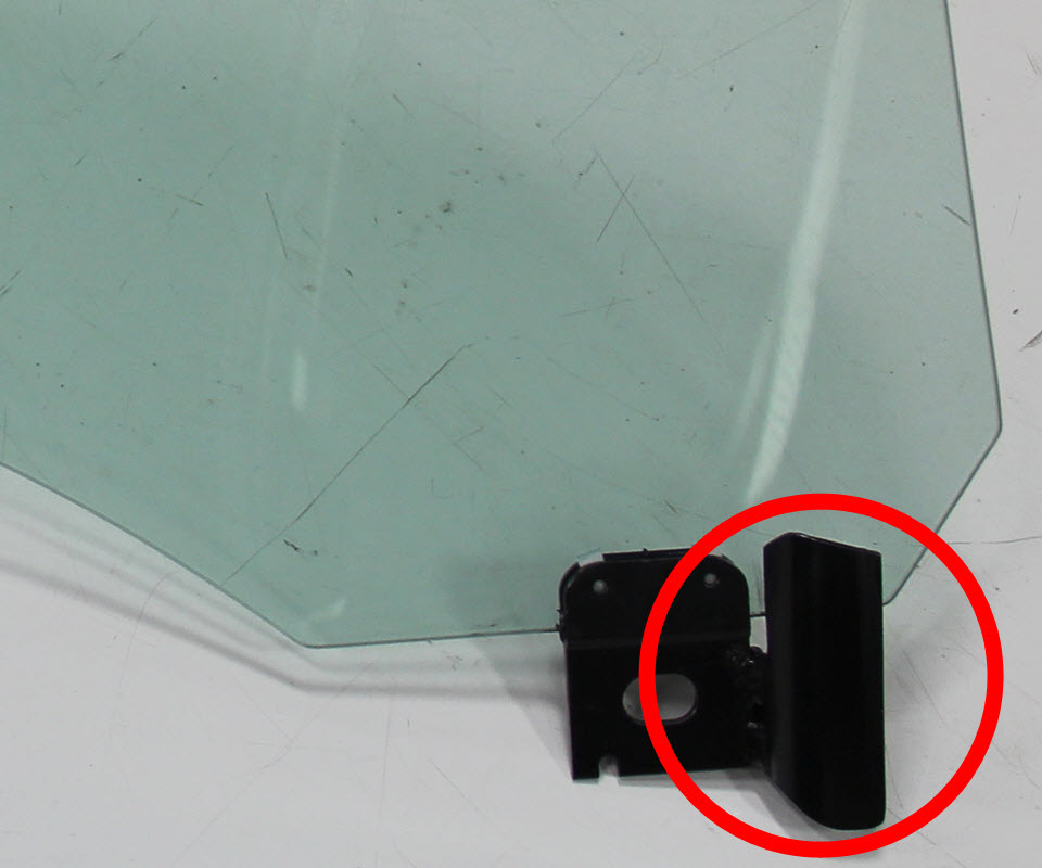 When installing the window, do not insert the glass into the guide channel. Instead, insert the metal guide plate on the window into the channel. Evenly and progressively press the glass onto the spacers.