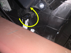 NoteTwist sensor counter clockwise 1/4 turn and pull out of rear HVAC assembly