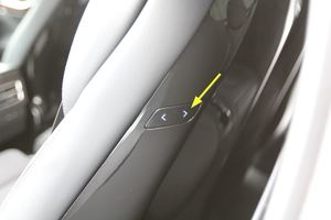 NotePress button located on LH 3rd row seat back assembly near headrest, fold seat back down towards front of vehicle into a flat position