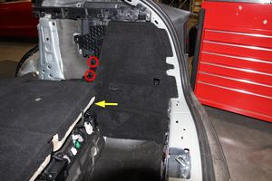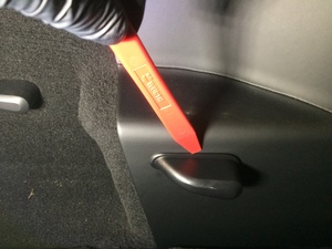 Note3x push clips, One is hidden between 3rd row seat and trunk side carpet panel