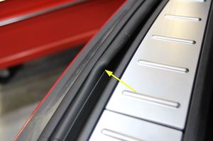 Note4x clips, 2x patch bolts, T25, 2.5 Nm, Make sure to seat liftgate seal properly, Install new patch bolts