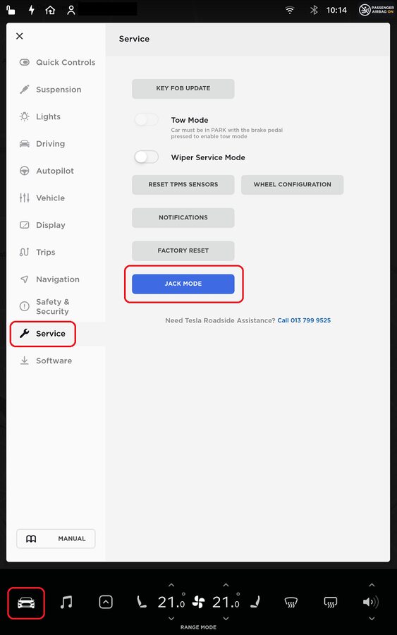 NoteUsing MCU touchscreen > Controls > Suspension > ''Standard''. Using MCU touchscreen > Controls > Service > ''JACK MODE''