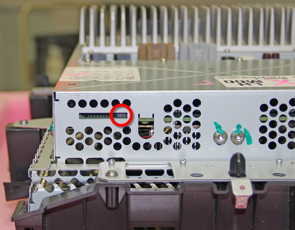 CAUTIONTake care not to damage component(s).NoteThe following image shows the SD card socket with the SD card removed for clarity.