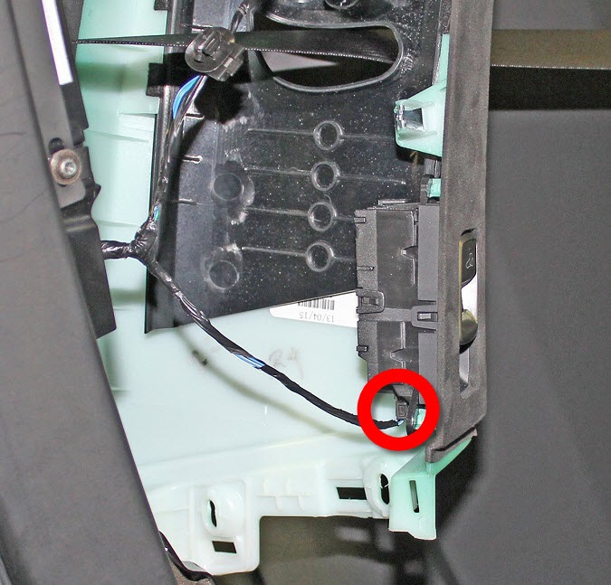 - Release the rear door switch from the retaining clips on the upper B-pillar trim panel.