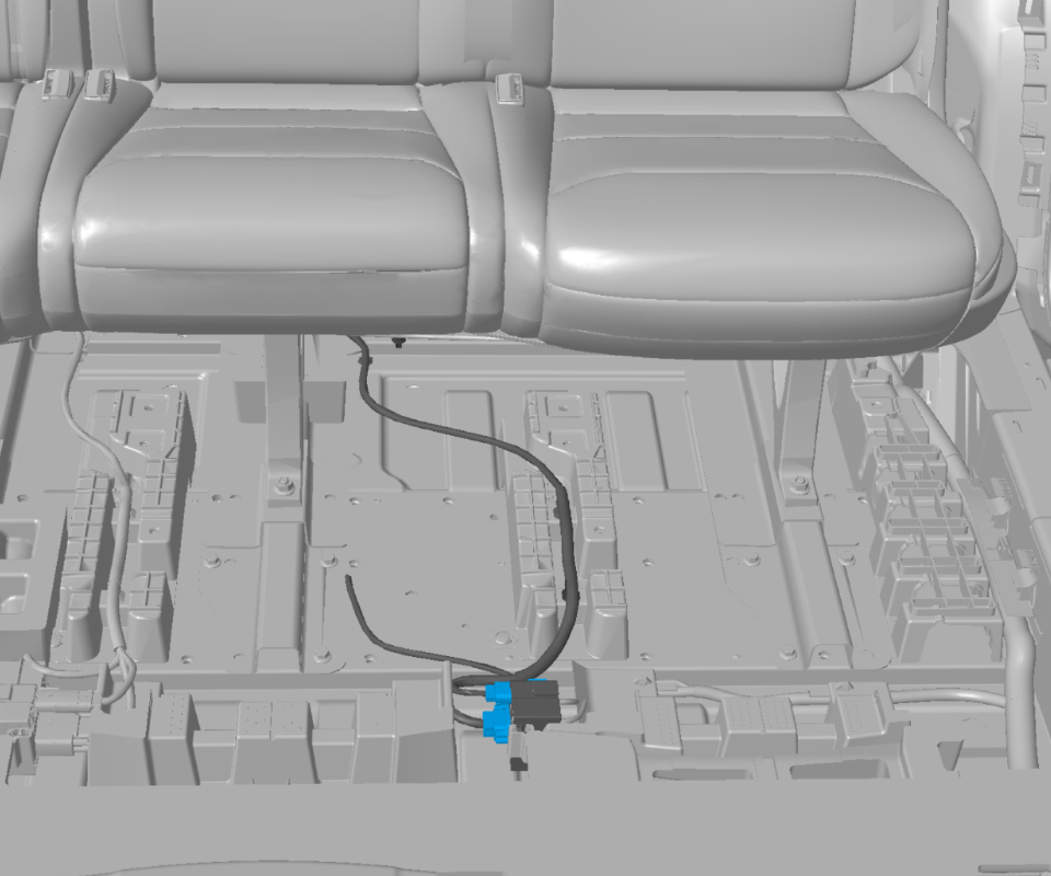 - Release the clip that secures the harness to the LH floor panel bracket.