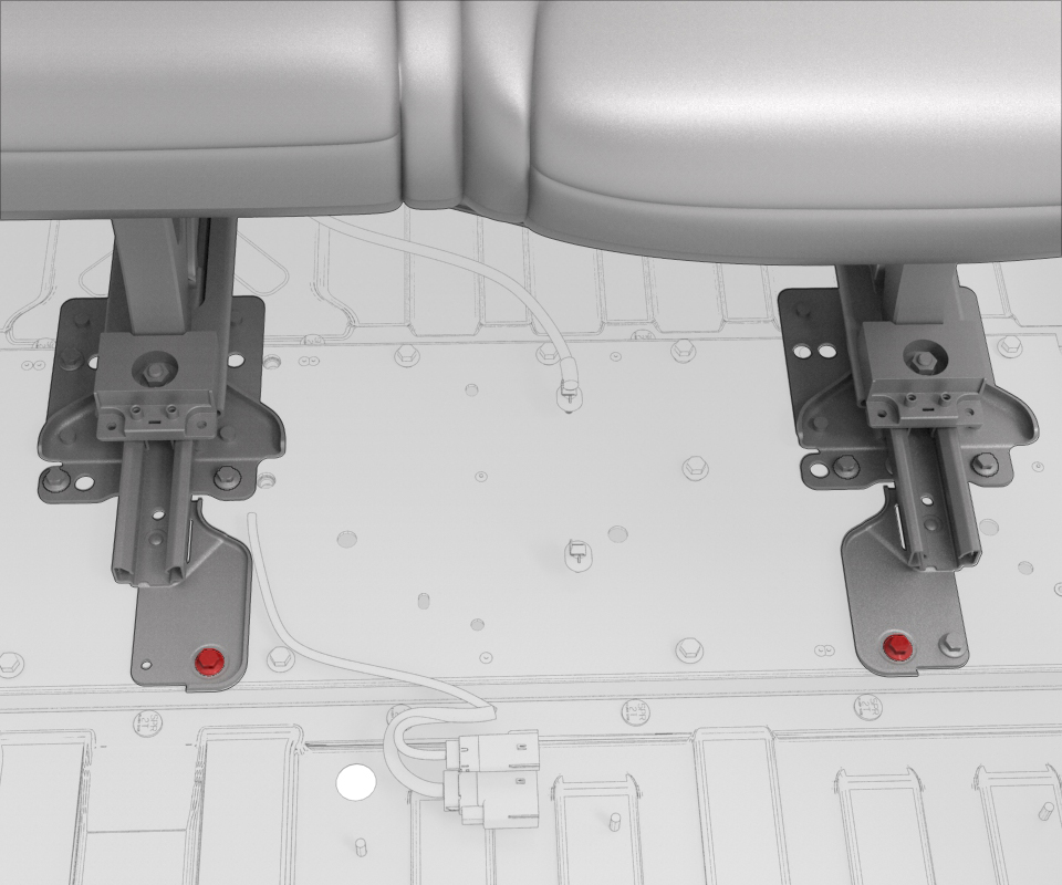 - Install and hand-tighten the forwardmost seat track bolts (x2). The forward bolts are torqued in a later step.