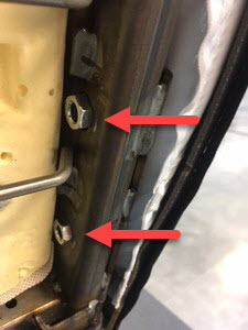Loosen the bolt that attaches the lower stop to the LH rear bench seat