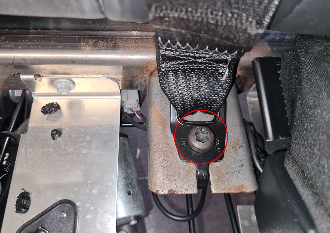 Loosen the bolt that attaches the center seat belt to the frame (torque 45